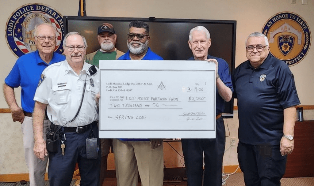 In a continued demonstration of community service and civic partnership, Lodi Masonic Lodge No. 256 recently presented a $2,000 donation to the Lodi Police Partners Foundation, a volunteer-driven organization dedicated to assisting the Lodi Police Department.